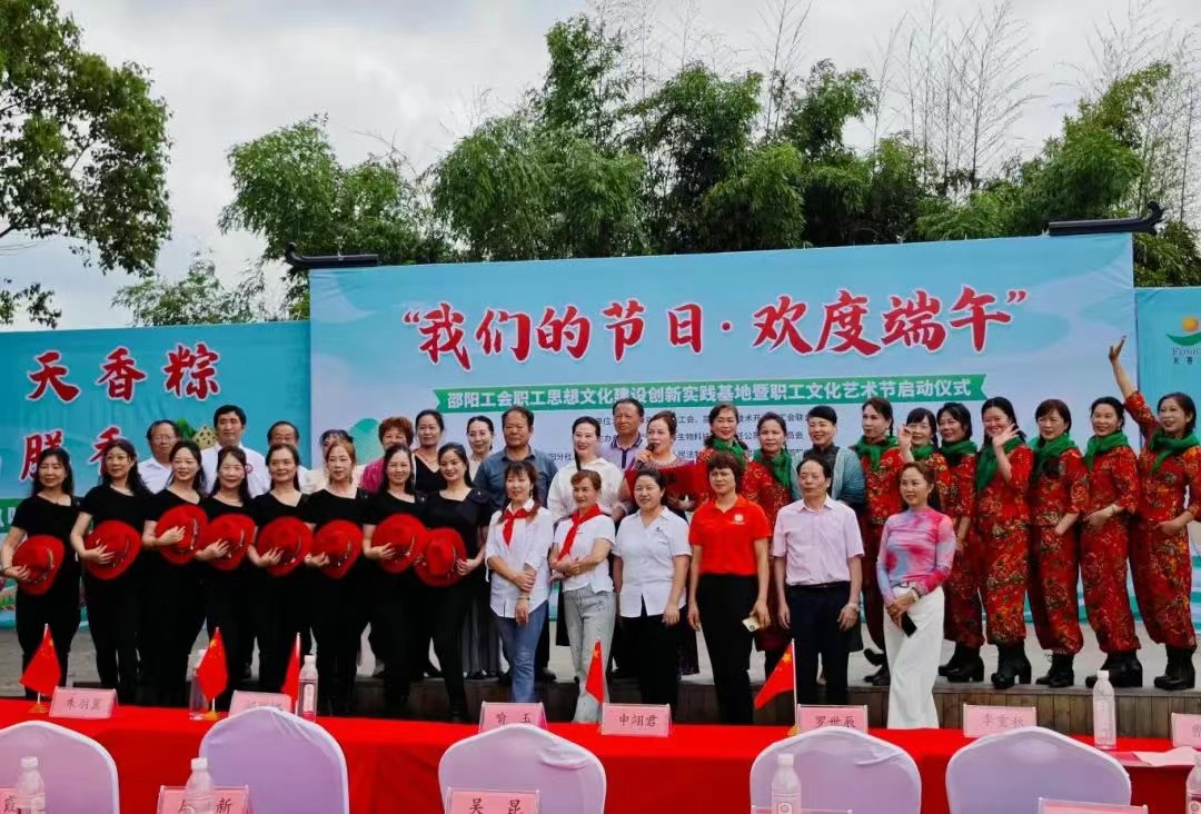 非遗文化展风采职工共建谱新篇SHOWYOURGRACE2025年5月29日上午,“我们的节日·欢度端午”邵阳工会职工思想文化建设创新实践基地暨职工文化艺术节启动仪式在国家级邵阳经济技术开发区湖南省天香生物科技有限责任公司隆